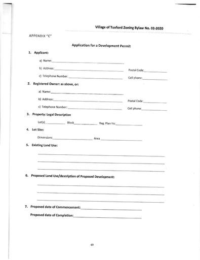 Documents Home » Planning and Development Folder Planning and Development Home » Planning and Development » Building Permit pdf Building Permit Published on 09 June 2024 Modified on 08 July 2024 By TuxfordADMIN 446 downloads Download (pdf, 48 KB) TUX Building Permit.pdf Home » Planning and Development » Development Permit pdf Development Permit Published on 09 June 2024 Modified on 08 July 2024 By TuxfordADMIN 605 downloads Download (pdf, 77 KB) TUX Development Permit.pdf Home » Planning and Development » Professional Building Inspections Default Professional Building Inspections Published on 16 June 2024 Modified on 16 June 2024 By TuxfordADMIN 1069 downloads Download Home » Planning and Development » Zoning Bylaw pdf Zoning Bylaw Published on 02 June 2024 Modified on 08 July 2024 By TuxfordADMIN 3454 downloads Download (pdf, 3.69 MB) 02-2020 Zoning Bylaw (1).pdf Home » Planning and Development » Zoning Bylaw Amedments pdf Zoning Bylaw Amedments Published on 02 June 2024 Modified on 08 July 2024 By TuxfordADMIN 450 downloads Download (pdf, 208 KB) 2023 Zoning Bylaw Amendments.pdf
